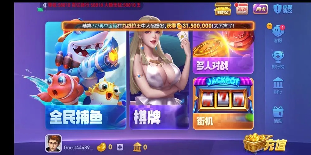2、大量金币奖励免费筹码。新手玩家上线即得手软,百万奖金池瓜分大奖。
