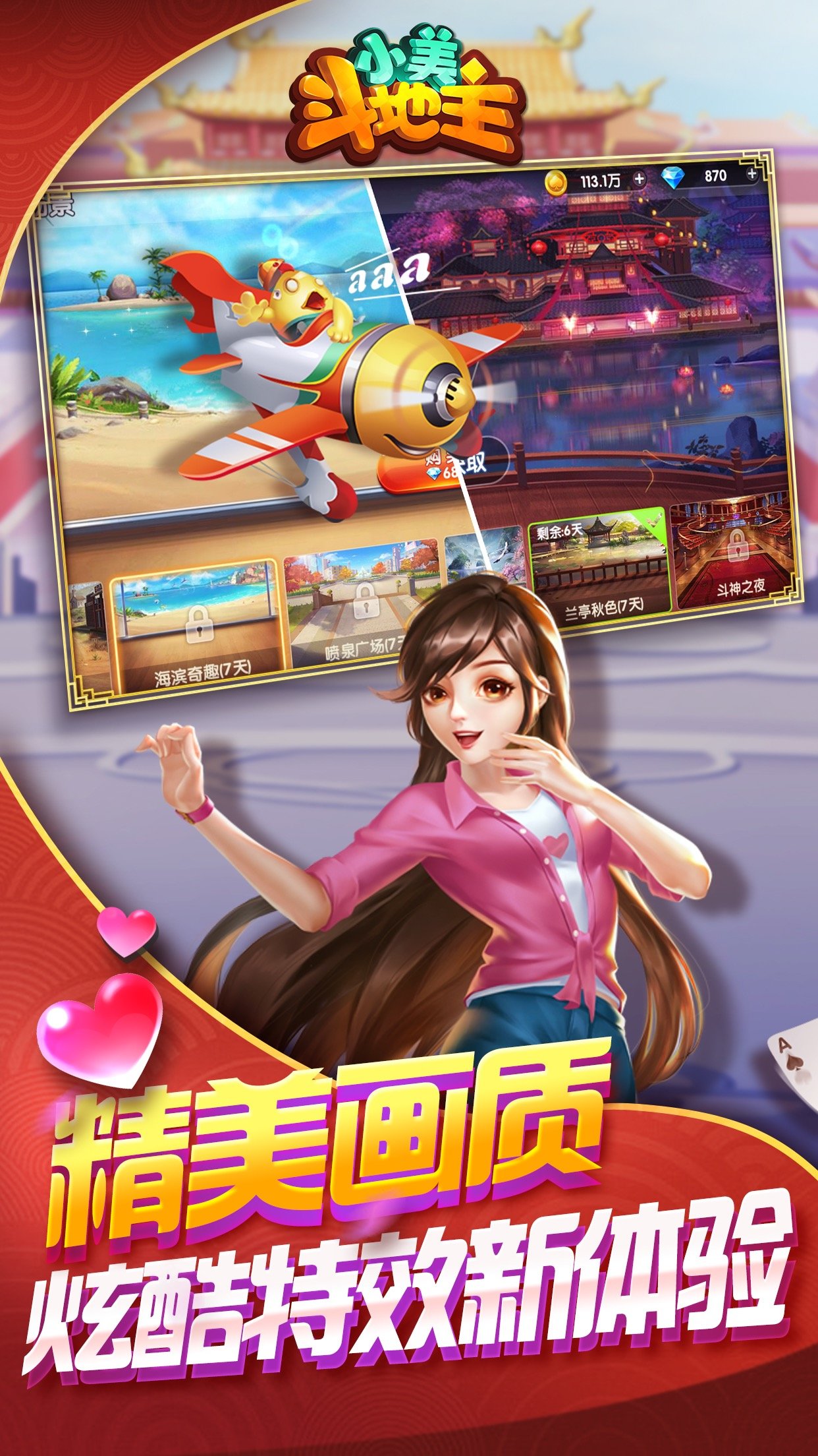 2、【高品质的游戏体验】 超精美场景化的游戏界面,感受超级真实的斗地主;超炫高清的飞机动画,为斗地主增添更多欢乐元素!