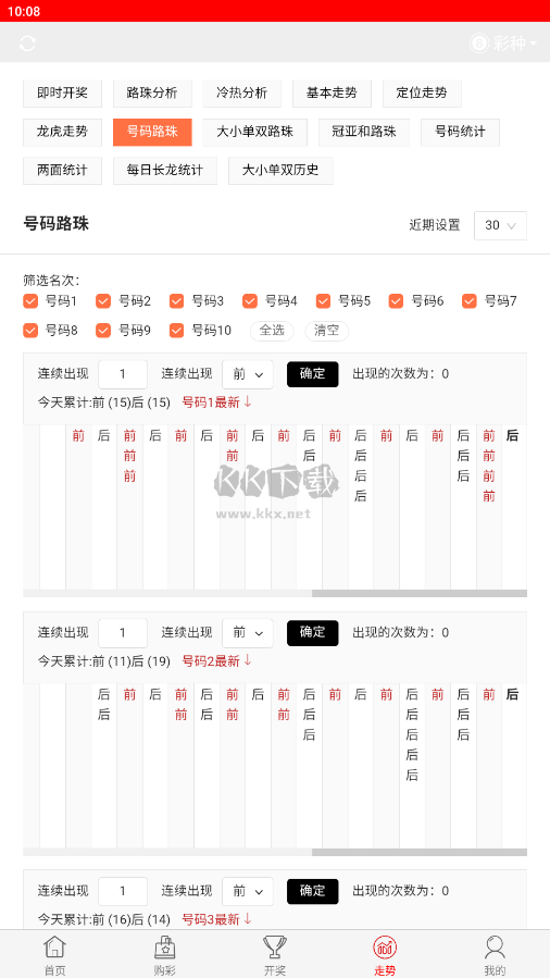 拍拍彩APP功能目的:显示每期开出号码分布走势,走向趋势及综合统计分析数据,便于用户对下期进行预判。