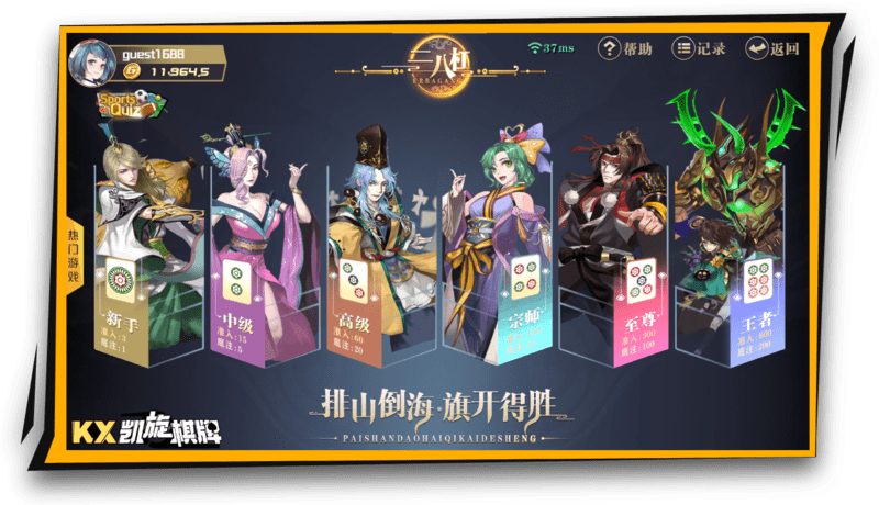 2. 麻将:四人游戏,通过摸牌、碰杠、胡牌等方式进行。游戏中首先胡牌的玩家为胜者,结算时根据胡牌番数计算得分。