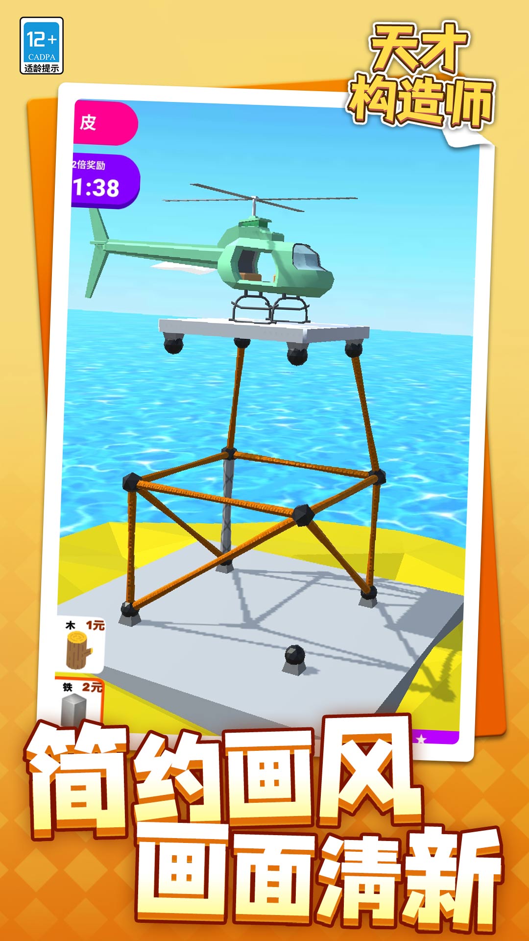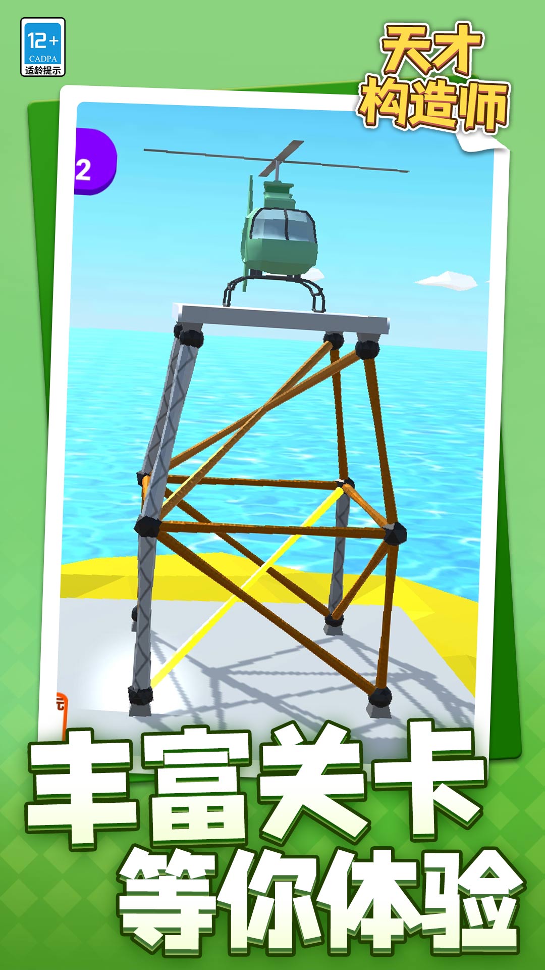 天才构造师是一款超好玩的创意游戏。玩家会变身建筑大师,从一根小木条开始,一步步搭建自己的建筑,每块材料的摆放都关乎成败。通过巧妙设计和耐心调整,打造出令人惊叹的建筑奇迹,体验创造的乐趣与智慧的魅力。