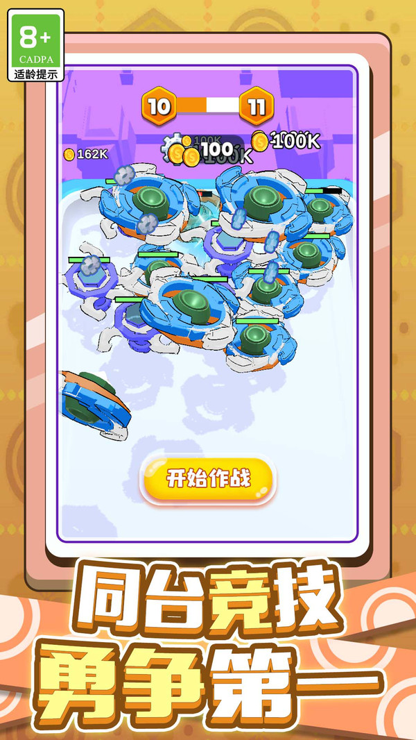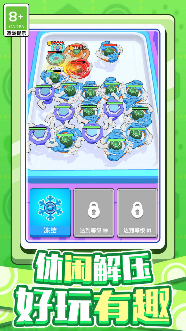 3、每个关卡设有特定目标,如在限定时间内合成指定等级陀螺,或让陀螺保持旋转达到一定时长,挑战性逐步提升。